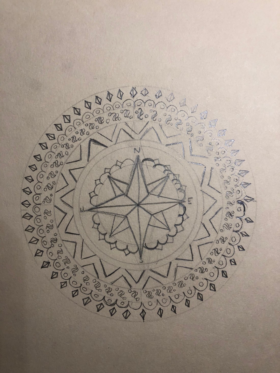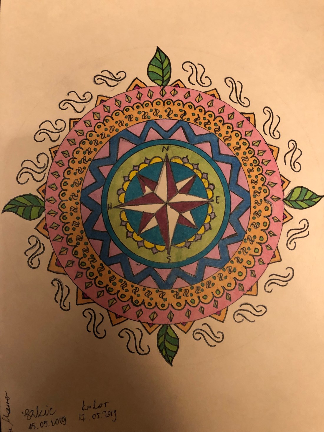 As I described few posts earlier apart from human faces I also practice drawing mandalas. Now I wanted to make it colourful, so I decided to make some kind of a colouring book illustration. So I have drawn a shape and the whole mandala with a pencil, then corrected it with a fine-tip felt pen. After that I just stressed myself out while colouring it with some markers.